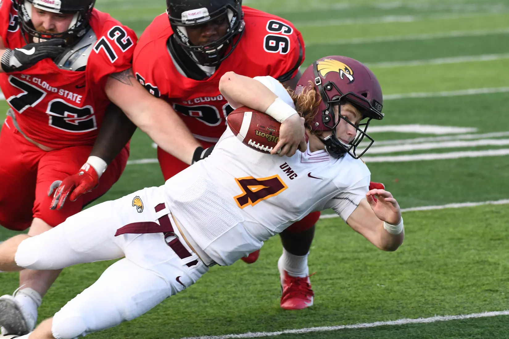 The Huskies defense proved just how talented and disciplined they really are by pitching a shutout. St. Cloud State University held the Golden Eagles to just 11 first downs and only gave up 114 total yards of offense. SCSU added seven sacks, one forced fumble, and four pass break-ups. The St. Cloud State University defense also held Minnesota Crookston to 1-of-13 on third down conversions and did not allow the Golden Eagles into the red zone. This is the first shutout since 2016 when the Huskies shutout Minot State University 31-0.