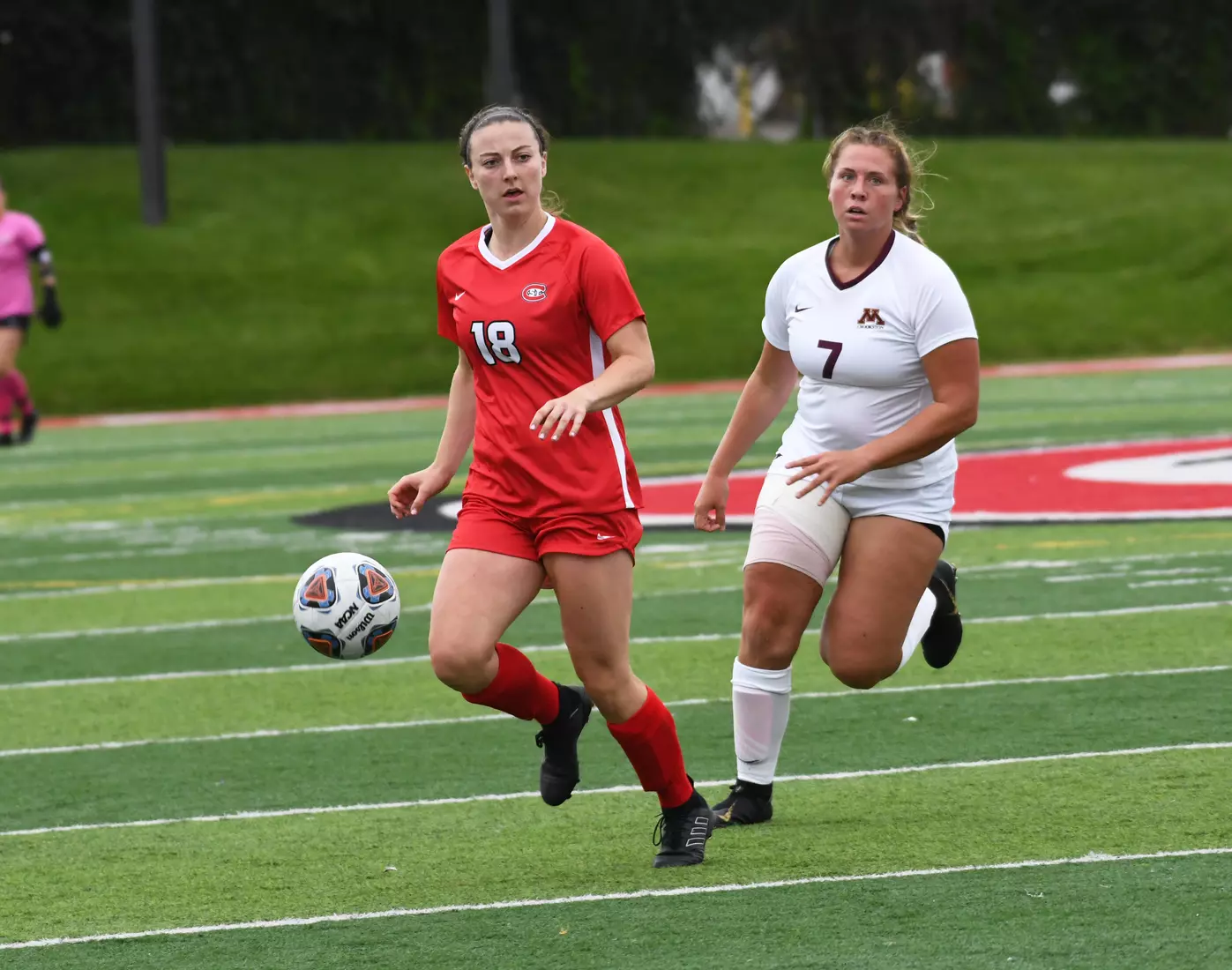 SCSU soccer charts 2-0 victory over Minnesota Crookston