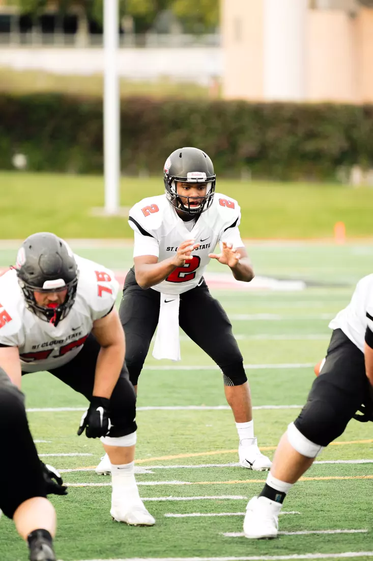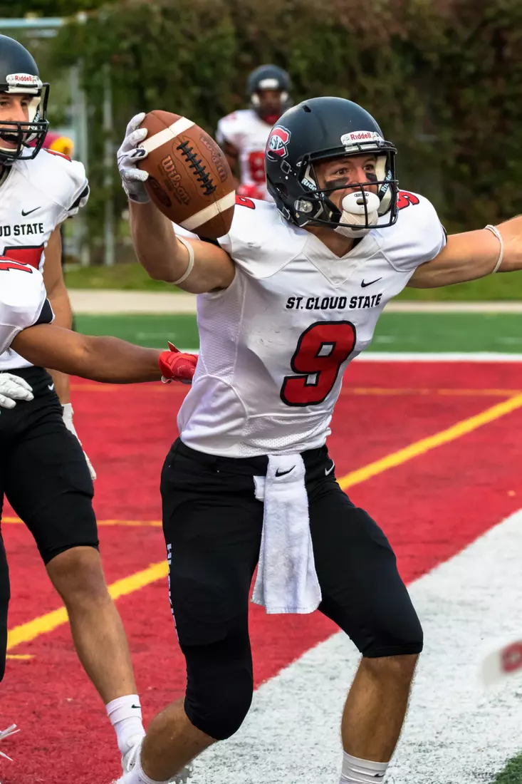 St. Cloud State came out the gate firing on all cylinders as they put together a methodical seven play, 75-yard drive. On the very first play of the game Lawhorn welcomed Solberg back as the two connected on a 27-yard throw and catch. The drive ended with Lawhorn finding Parker for his first touchdown reception of the year on a 20-yard hookup.