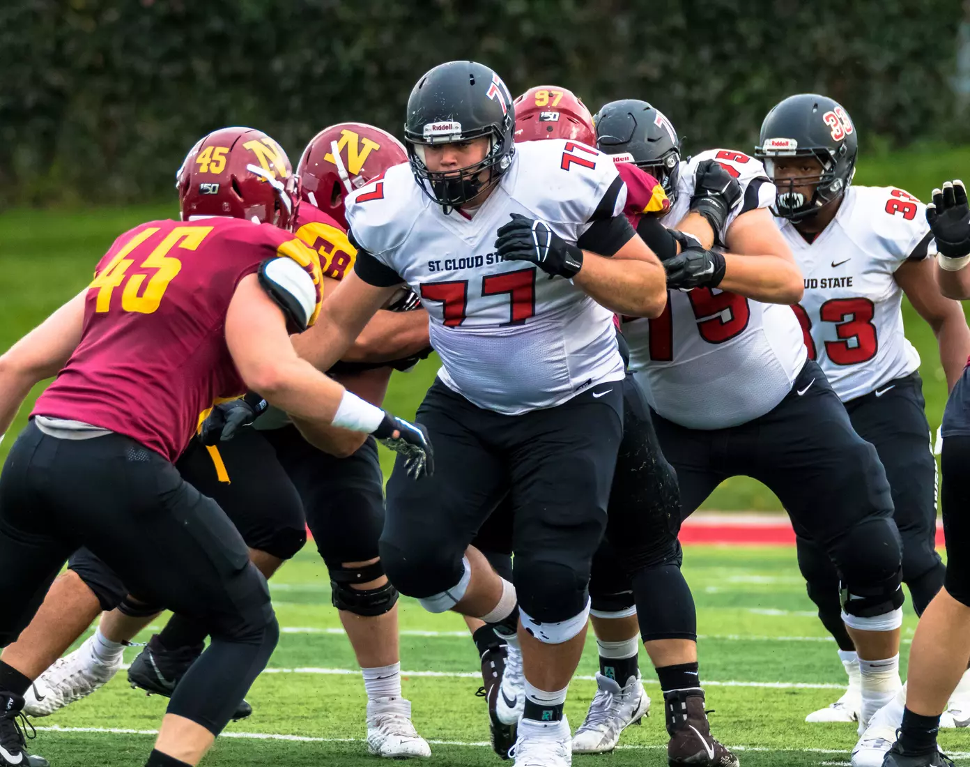 After taking a 17-14 lead into the second half St. Cloud State struggled to move the ball. The Huskies had 115 rushing yards on the night on 30 attempts. Dwayne Lawhorn (Sr., QB, Germantown, Wis.) threw for 204 yards on 16-of-33 passing. Lawhorn also added 50 rushing yards on seven rushing attempts. Paris Howell (So., RB, Brookfield, Wis.) had 40 rushing-yards on six attempts and Joe Blando (So., RB, Oak Creek, Wis.) had 39 rushing-yards on 11 carries. John Solberg led the way with 111 receiving-yards on six receptions and touchdown. Peyo Parker (So., Chicago, Ill.) added his first touchdown reception of the year and also tallied 49 reception yards on 4 catches.